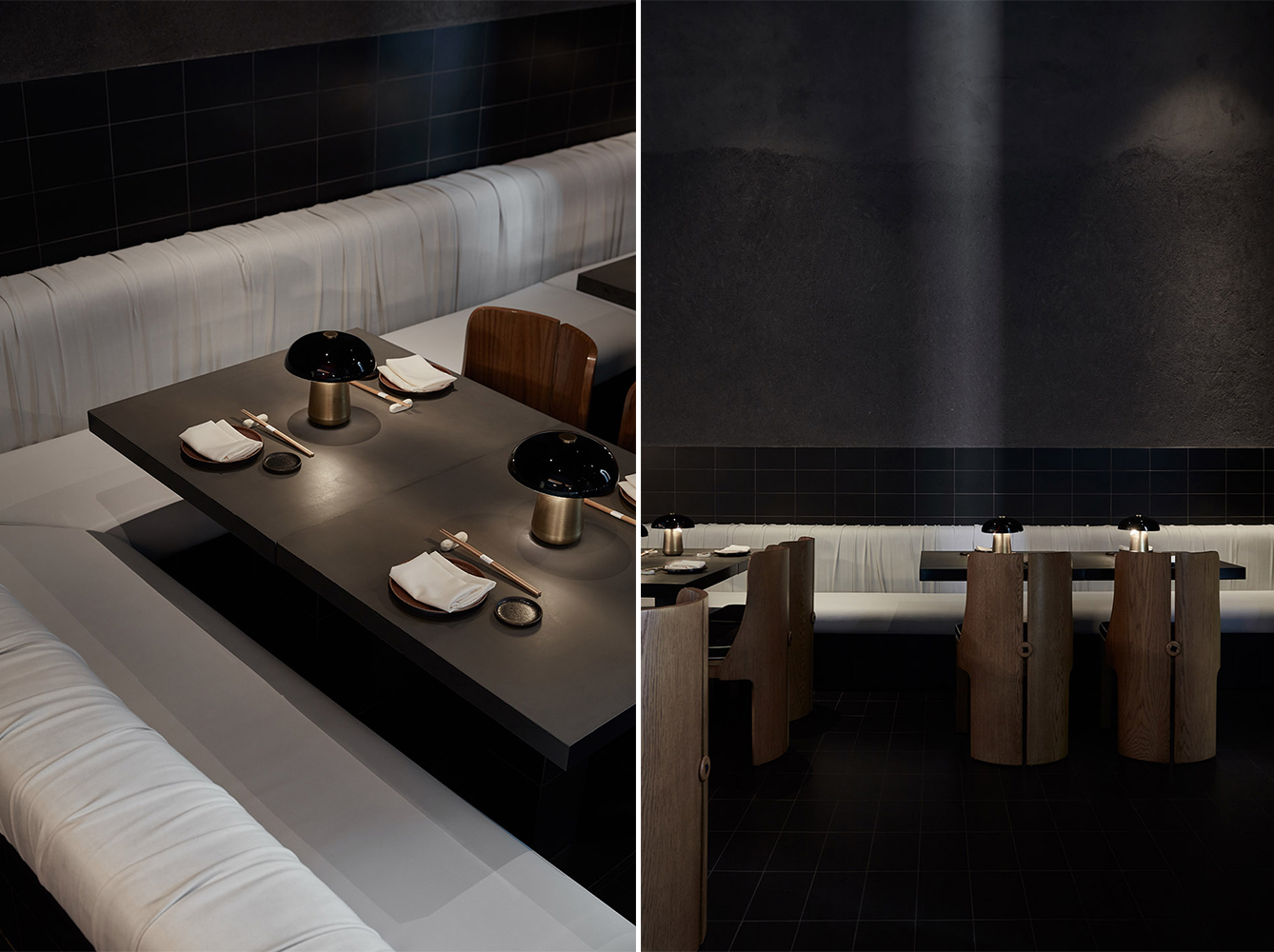 VSHD的設計策略是打造一個獨一無二的用餐體驗。客人穿過六米厚的長方形柱子,進入一個充盈著隱秘感的空間——一個可以躲避和隔絕外部噪音的地方。在這里,客人可以單獨或共同用餐,也可以沉思冥想。