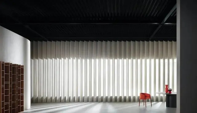 從外面,百葉窗可以讓人們一瞥內(nèi)部空間及其展示,從而創(chuàng)造好奇心并吸引人們進(jìn)入展廳。