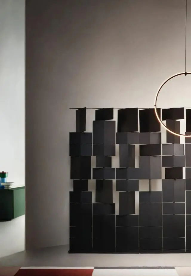 緊挨著空間隔墻的黑色軟隔斷給清水混凝土增添了趣味,極具高級(jí)感又不失活力。