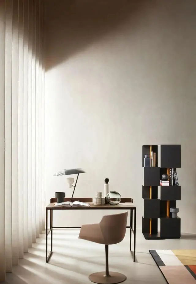 展廳家居物件形色各異,陽光從混凝土百葉窗中照射進(jìn)來,為MDF Italia品牌增添了光彩。
