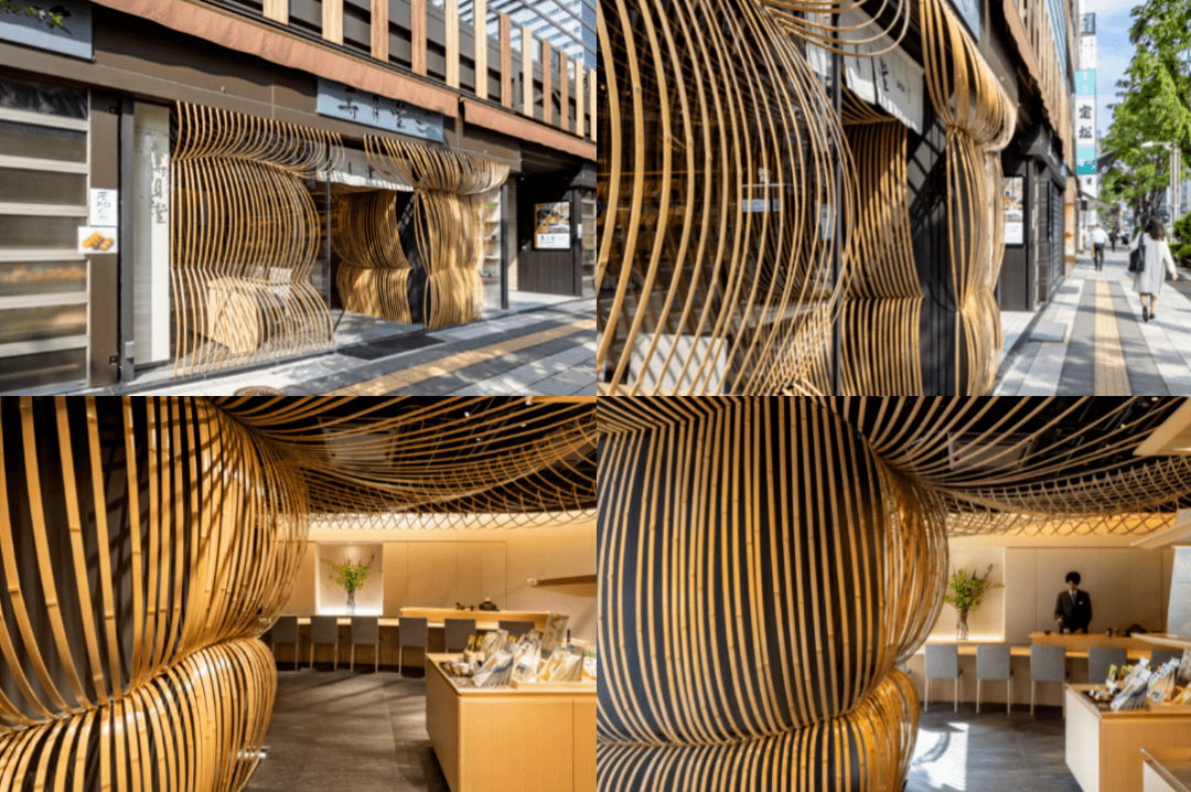 竹子,是隈研吾最喜歡運(yùn)用的材料之一。早在2002年他在中國(guó)長(zhǎng)城設(shè)計(jì)的項(xiàng)目——竹屋,利用竹子的靈活特性,創(chuàng)造了可以彎曲和展開的竹傘并填滿了室內(nèi)空間,直到今天都為人們津津樂道。這種天然又輕盈的材質(zhì)在隈研吾手下,幻化出無數(shù)美麗設(shè)計(jì)佳作。