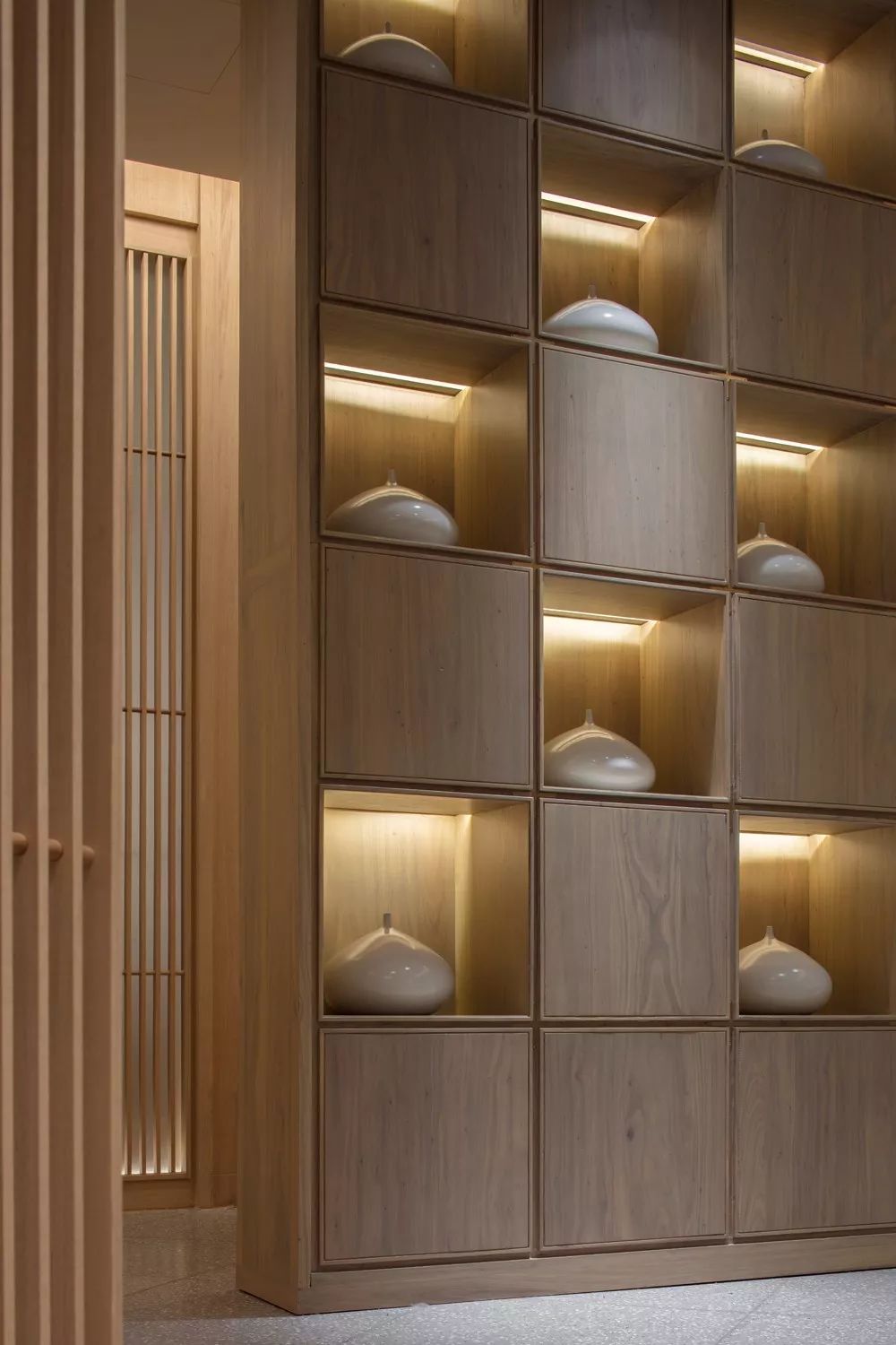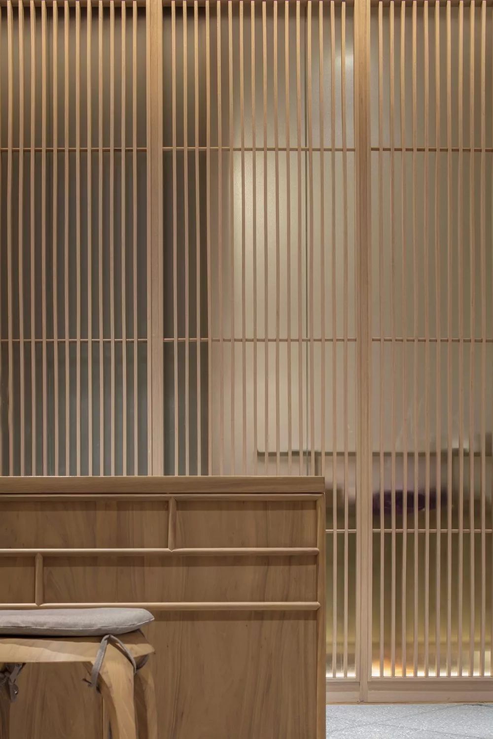 大面積的實木家具、壁材,讓空間整體呈現明亮質樸的氛圍,東方文化的內斂氣質游蕩在似有若無之間。