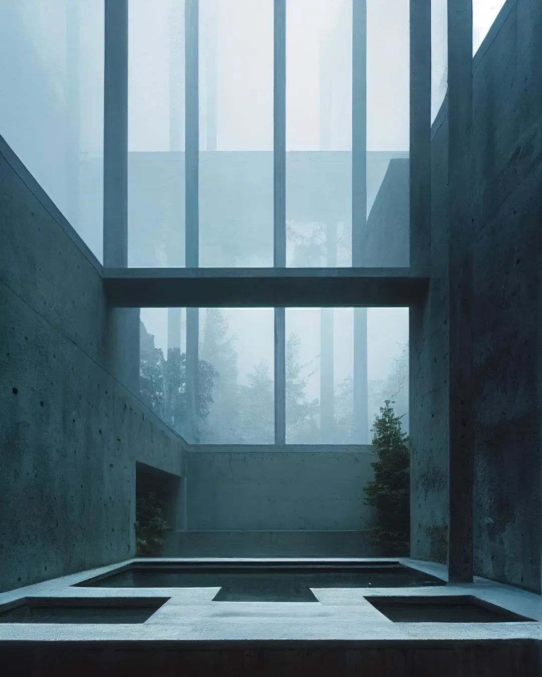建筑事務(wù)所Studio Arkhagen將Midjourneyai等AI繪畫工具作為設(shè)計的輔助手段,憑借對程序輸入詞匯的不斷調(diào)試創(chuàng)作了一系列更貼合現(xiàn)實的建筑作品,并在此基礎(chǔ)上模擬自然的真實景觀,闡述自己對于環(huán)境與未來建筑發(fā)展方向的思考。