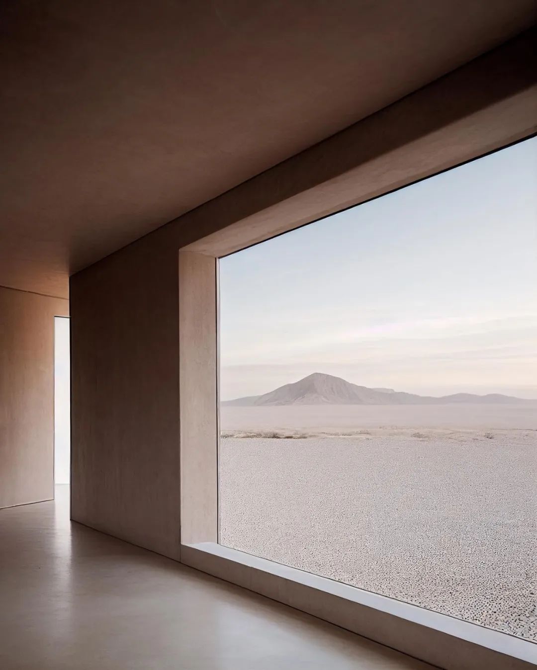 美國內(nèi)華達(dá)州的黑巖沙漠是大自然的鬼斧神工之作,冰河時代留下的巖床和高山組成了壯麗的風(fēng)景線。這座位于沙漠之中的度假別墅以沙色的混凝土形體呼應(yīng)環(huán)境,并利用住宅大尺度的窗戶框住了無人的景觀,詮釋在地性的設(shè)計思考。