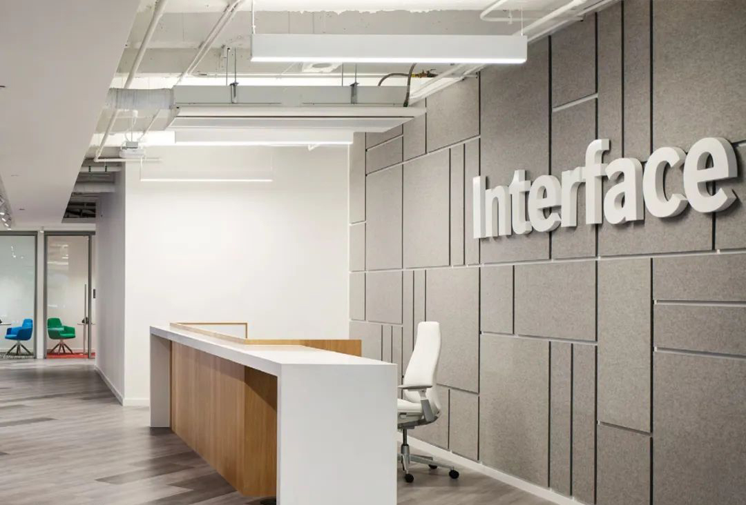 地毯品牌Interface在亞特蘭大的總部,Perkins+Will選擇了靜謐灰作為Logo墻主色調(diào),并選擇了Filzfelt的Akustika 10 Wall墻面吸聲系統(tǒng),降噪系數(shù)高達(dá)0.75.